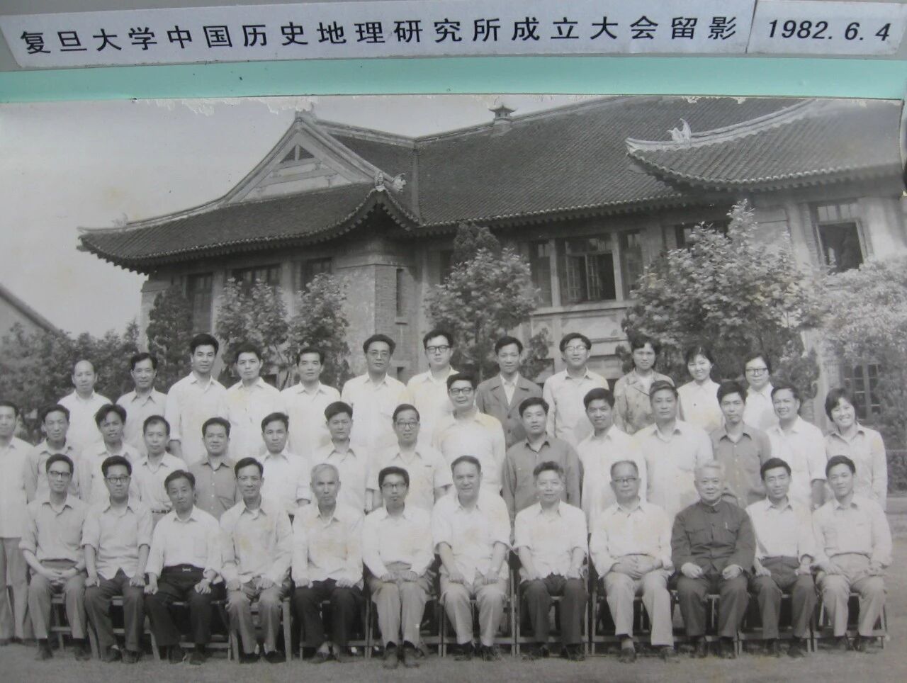 1982年6月,复旦大学中国历史地理研究所成立,谭其骧任所长,邹逸麟任副所长。前排右四为谭其骧、左一为邹逸麟