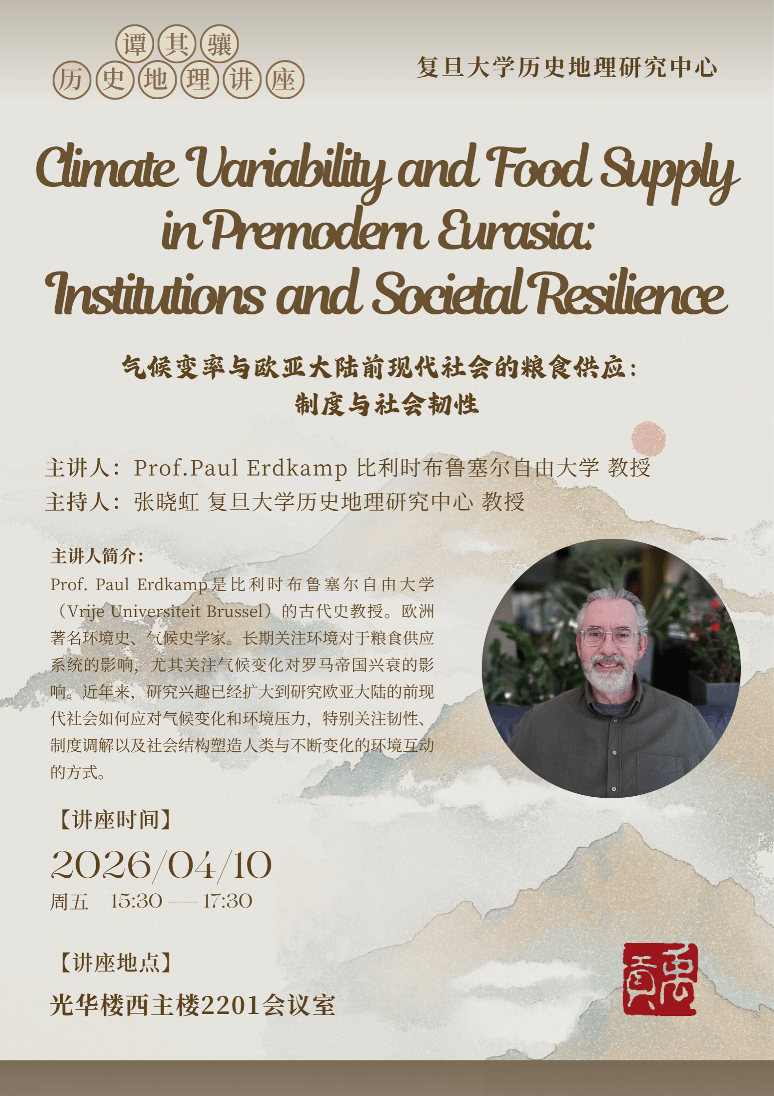 谭其骧历史地理讲座:气候变率与欧亚大陆前现代社会的粮食供应:制度与社会韧性