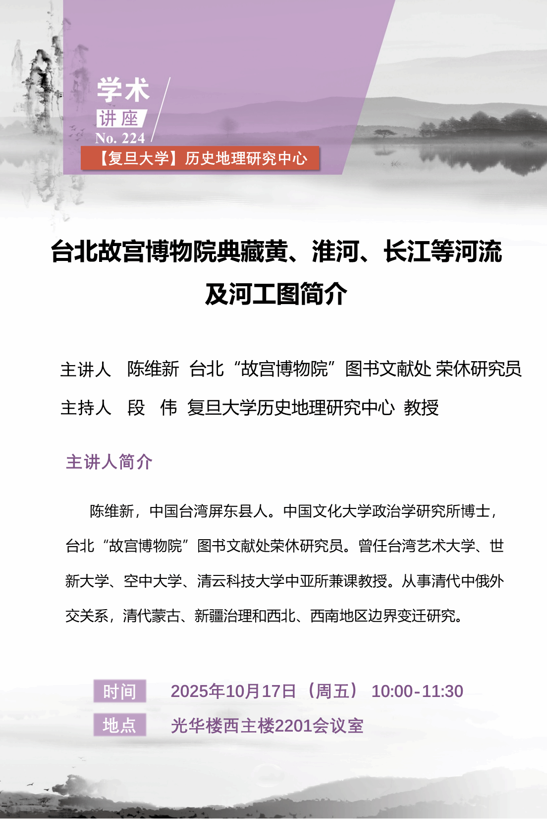 历史地理研究中心讲座(224):台北故宫博物院典藏黄、淮河、长江等河流及河工图简介 -复旦大学历史地理研究中心