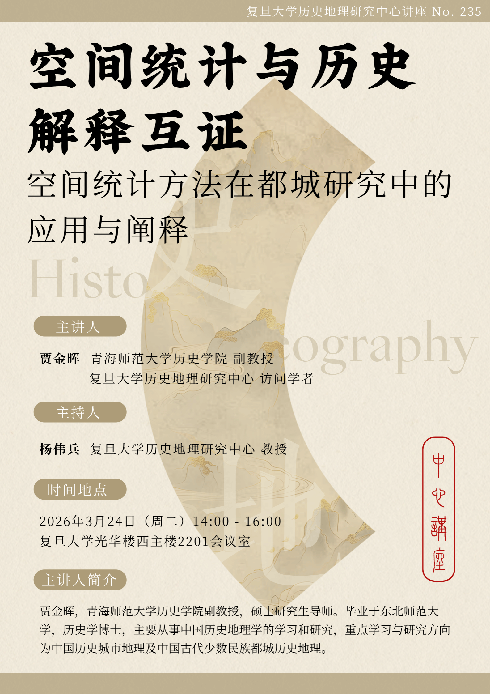 历史地理研究中心讲座(235):空间统计与历史解释互证:空间统计方法在都城研究中的应用与阐释