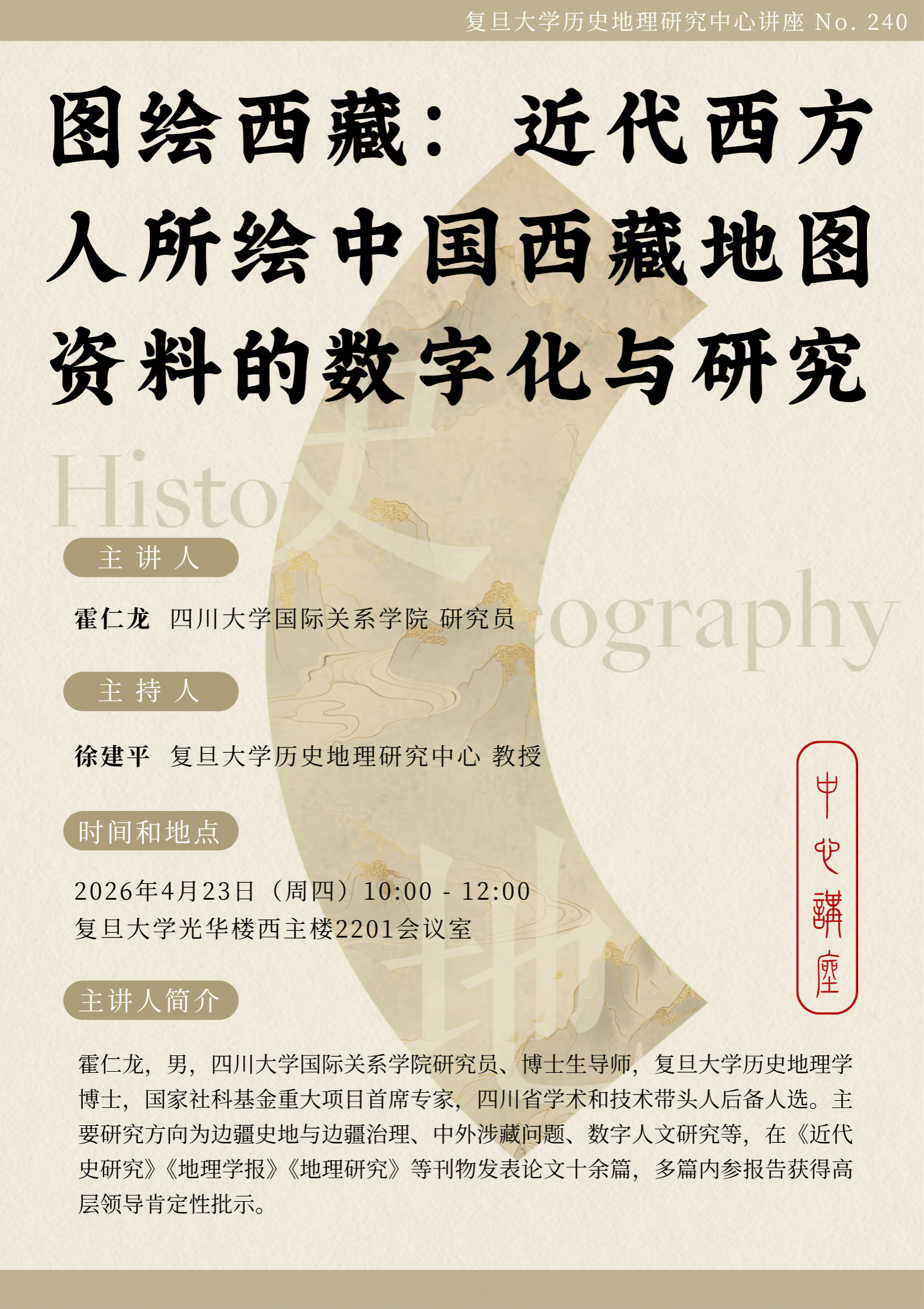 历史地理研究中心讲座(240):图绘西藏:近代西方人所绘中国西藏地图资料的数字化与研究